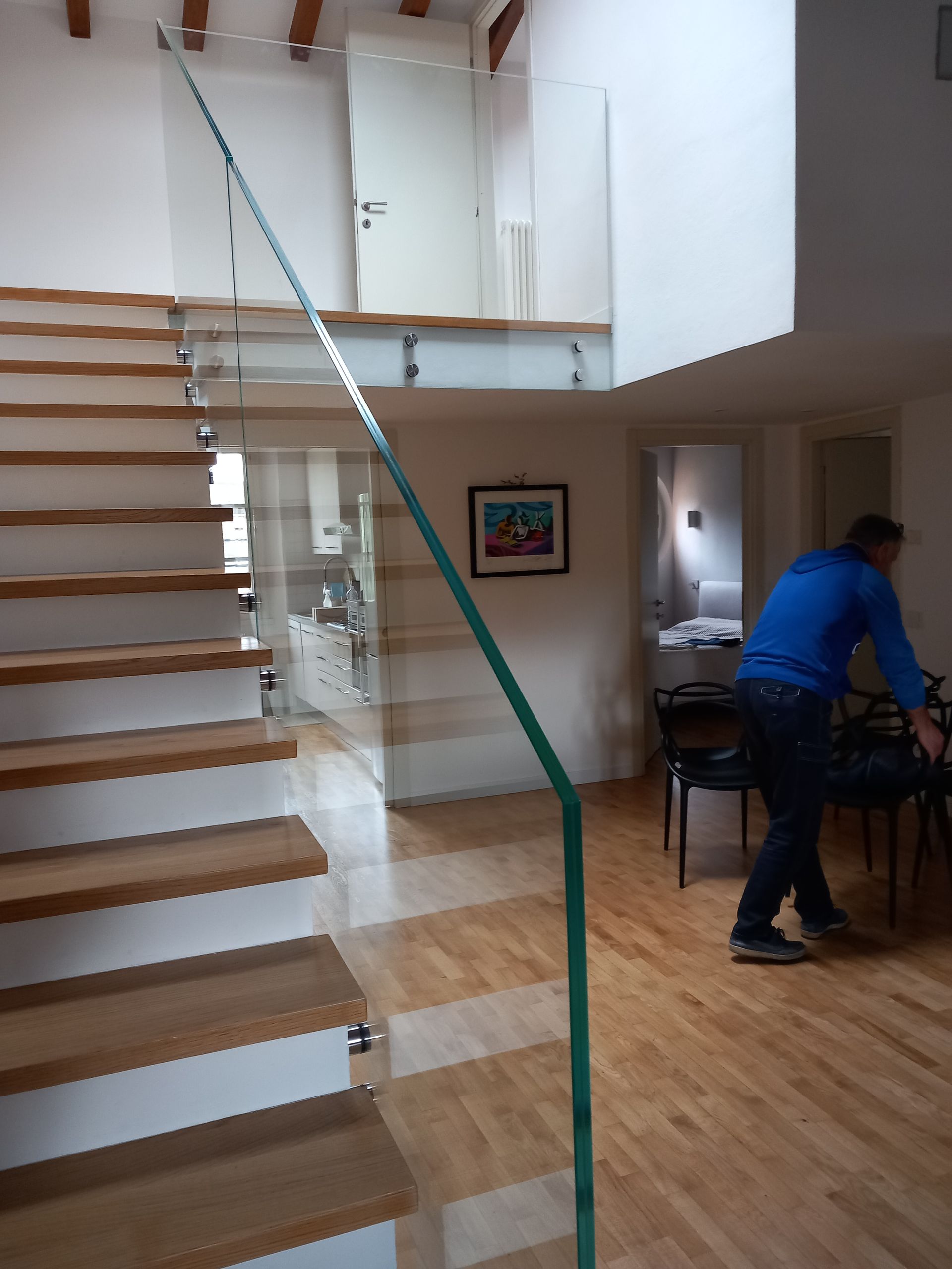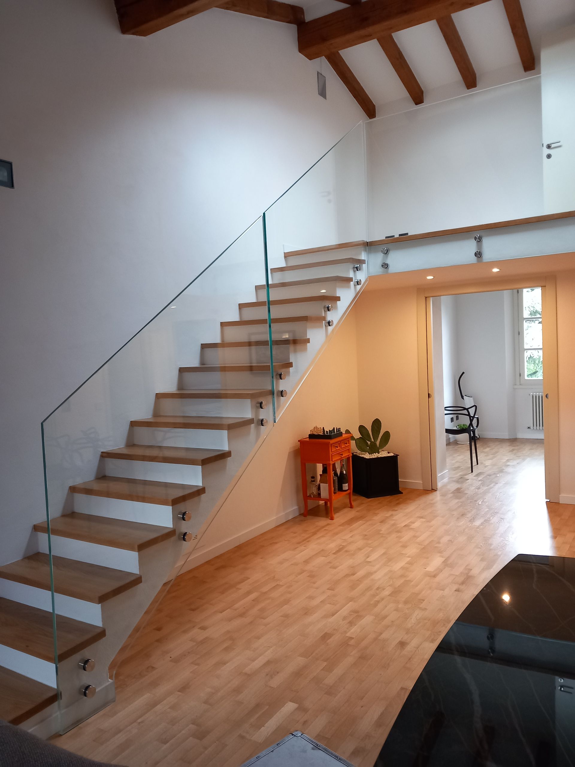 Le scale in vetro permettono agli ambienti posti su livelli differenti di dare respiro agli ambienti e di renderli visibili tra di loro, favorendo equilibrio ed armonia. Il vetro impiegato per i gradini è temperato o stratificato, in modo da assicurarne la massima resistenza e la massima sicurezza anche in caso di rottura.